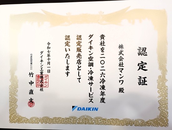 マンワは、ダイキン空調・冷凍サービス認定販売店です。